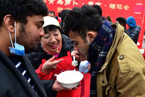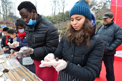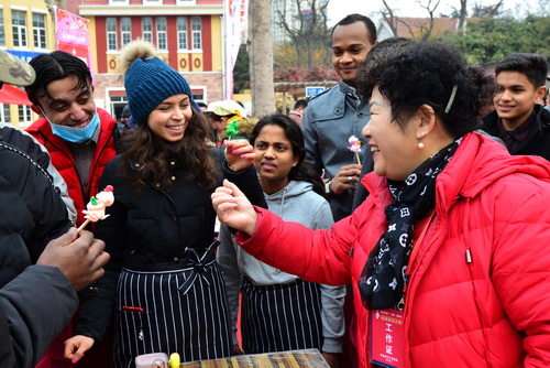 近日,学校组织部分外国留学生参加了青岛萝卜•元宵•糖球会民俗活动。元宵制作大赛是萝卜•元宵•糖球会的亮点之一,留学生们“滚”元宵、“包”汤圆,品尝自己的劳动成果。留学生们还对琳琅满目、栩栩如生的各式泥人面塑引起了极大兴趣,对中国传统民间艺术的精湛技艺赞不绝口。通过亲身体验,留学生们增加了对中国传统节日的了解,也真正感受到了中国传统民俗的魅力。