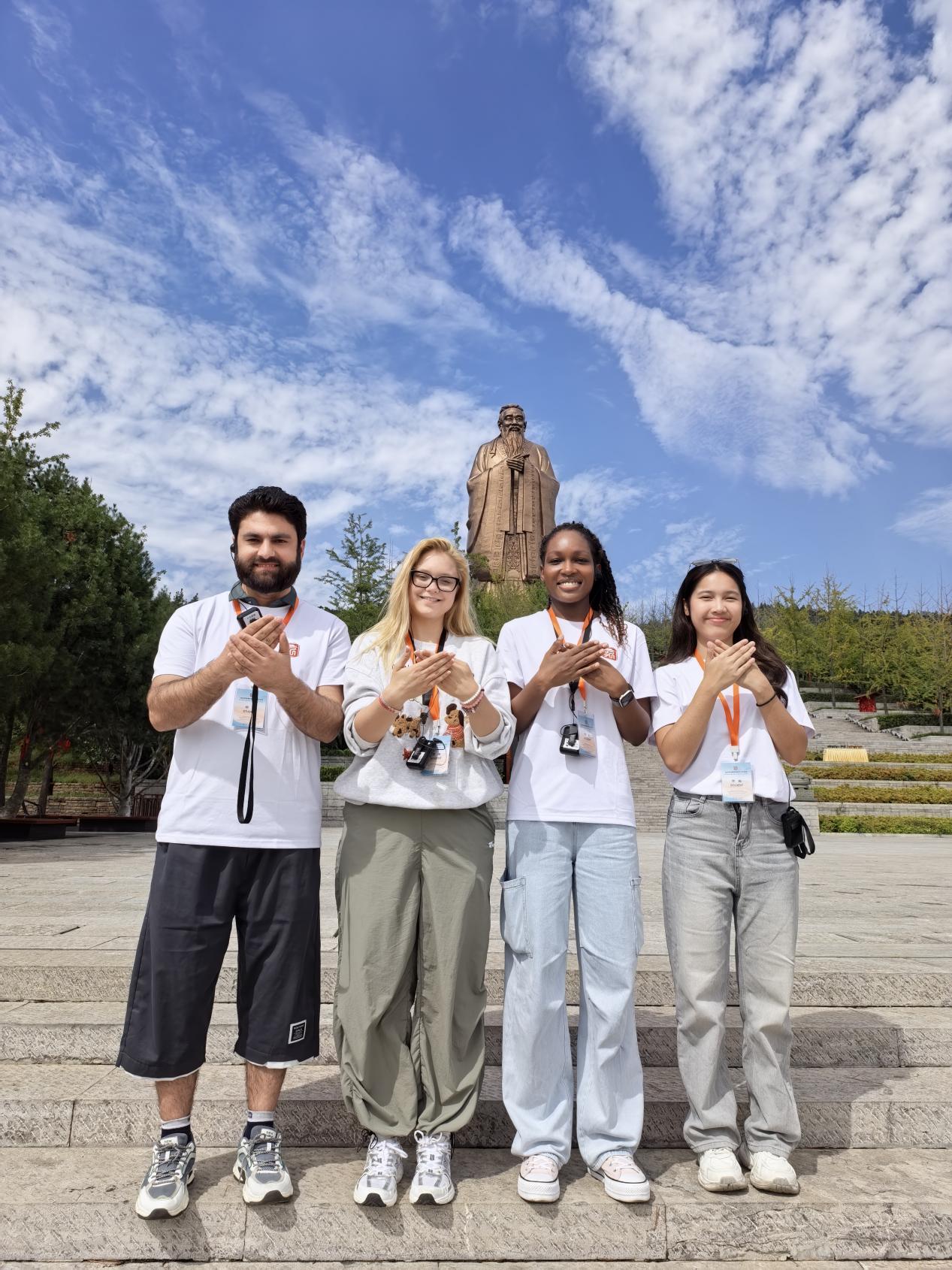 文化周活动期间,既有其乐融融的团建互动、沉浸式的中华文化体验与职业技能实践,也有美味有趣的中国传统美食制作;既不乏启迪思考的深度儒学讲座、踏古寻幽的孔府孔庙访古研学,亦有活力四射的草地音乐会、感悟儒家文化的尼山圣境文化研学。中外青年学生在文化研学、草地音乐会、世界青年说等活动环节展现出他们的多才多艺、自信从容与热忱真挚,他们共读孔儒经典、体验传统礼仪,在交流中碰撞思想、结下友谊,每一项活动都让他们更加了解中华优秀传统文化,也让他们体会到孔子思想的力量。