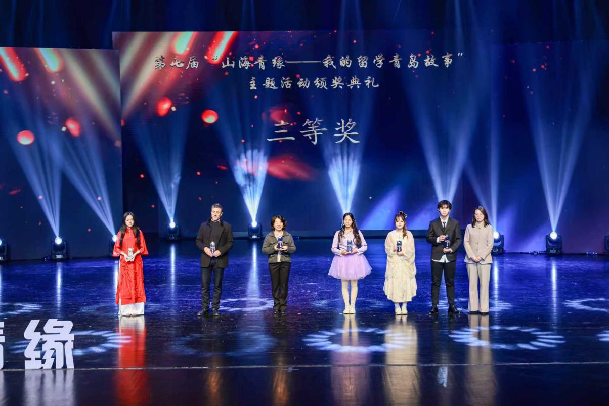 11 月 25 日,第七届 “山海青缘 —— 我的留学青岛故事” 主题活动颁奖典礼在青岛艺术学校举行。我校获一、二、三等奖各一项,于滢源、玄纪元和孙国栋获优秀指导教师。