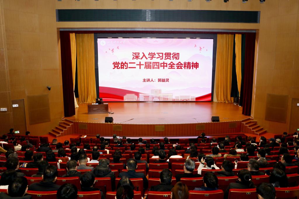 为深入学习宣传贯彻党的二十届四中全会精神,切实将思想和行动统一到党中央决策部署及学校工作要求上来,12月16日,校党委副书记郭益灵作了题为《深入学习贯彻党的二十届四中全会精神》的专题宣讲会。国际交流学院全体教职工认真聆听了此次宣讲报告。