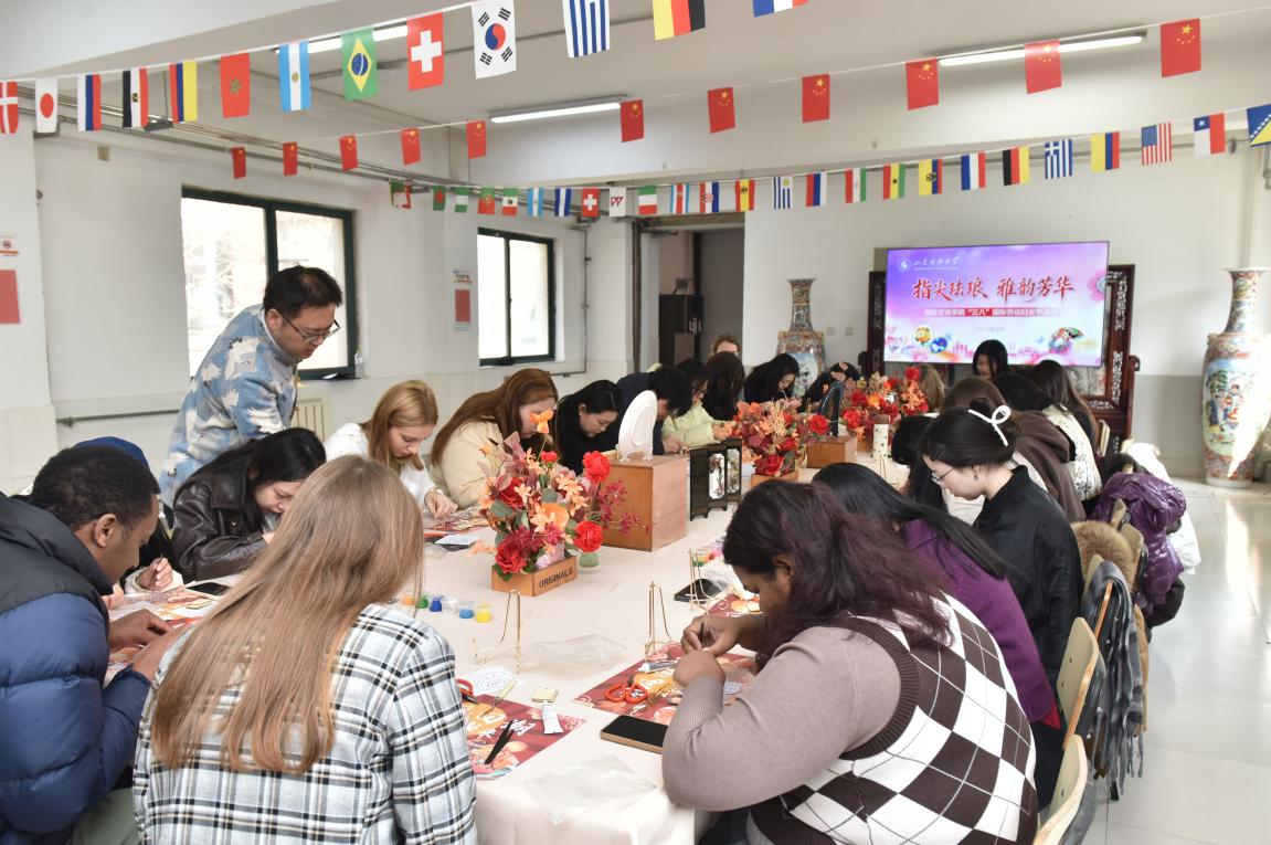 为庆祝第116个“三八”国际劳动妇女节,让中外女性师生在非遗手工体验中感受传统工艺之美、丰富精神文化生活,3月8日上午,国际交流学院于G19-21公寓二楼举办“指尖珐琅·雅韵芳华”主题活动,学院女教职工和国际女学生代表齐聚一堂,以指尖匠心勾勒艺术之美,在非遗韵味中绽放巾帼雅韵。