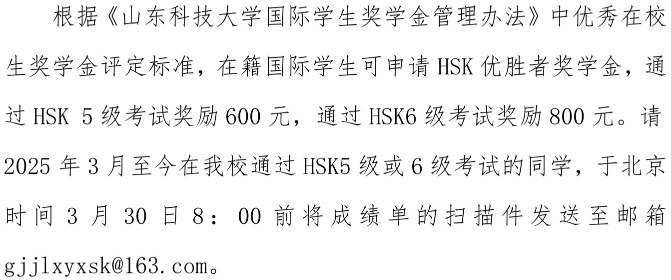 关于在籍国际学生申请 HSK 优胜者奖学金的通知
